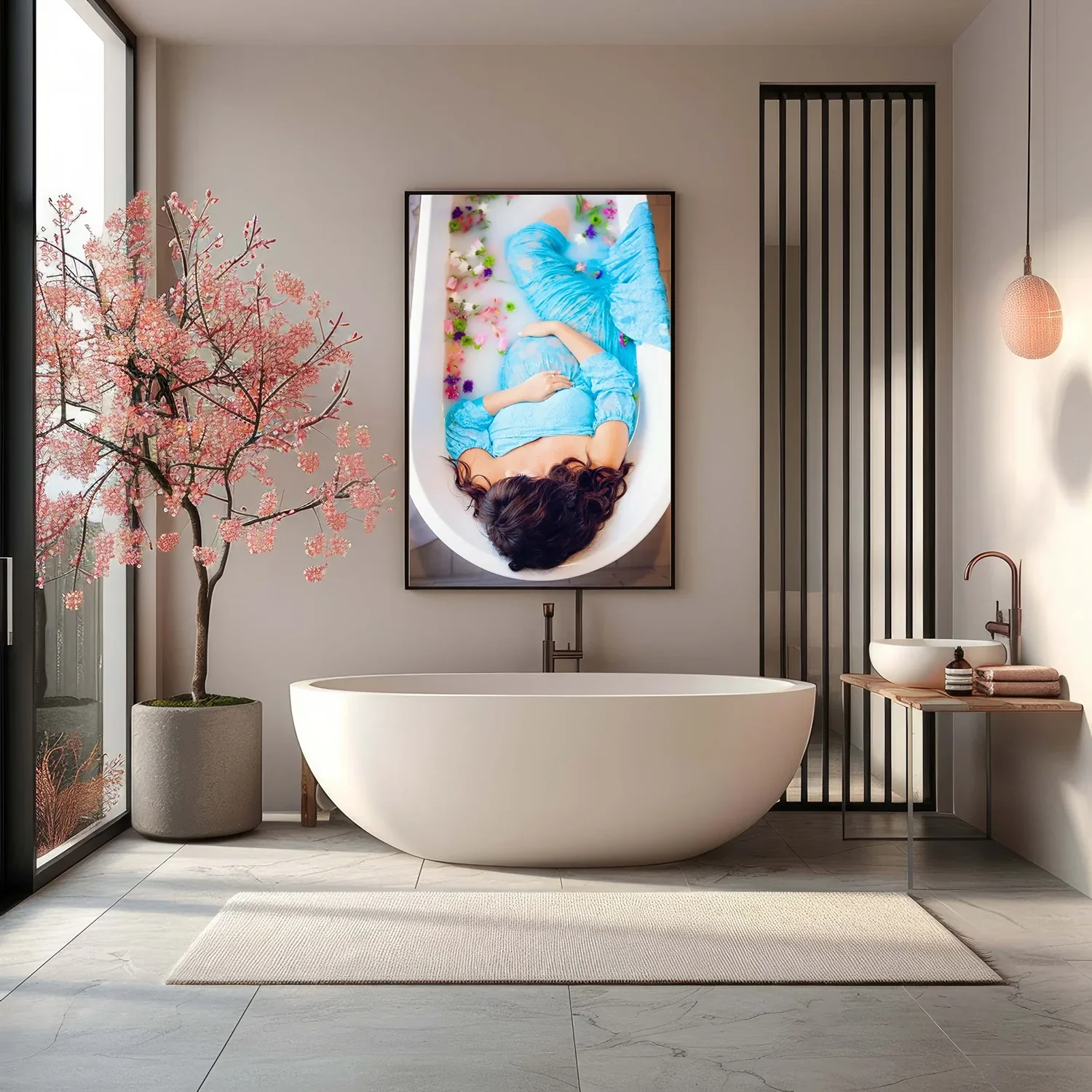 You’ll begin with professional hair and makeup to help you feel radiant and relaxed. Once styled, you’ll slip into a carefully selected studio gown before stepping into a warm, soothing milk bath prepared to help ease tension and create a spa-like atmosphere.
